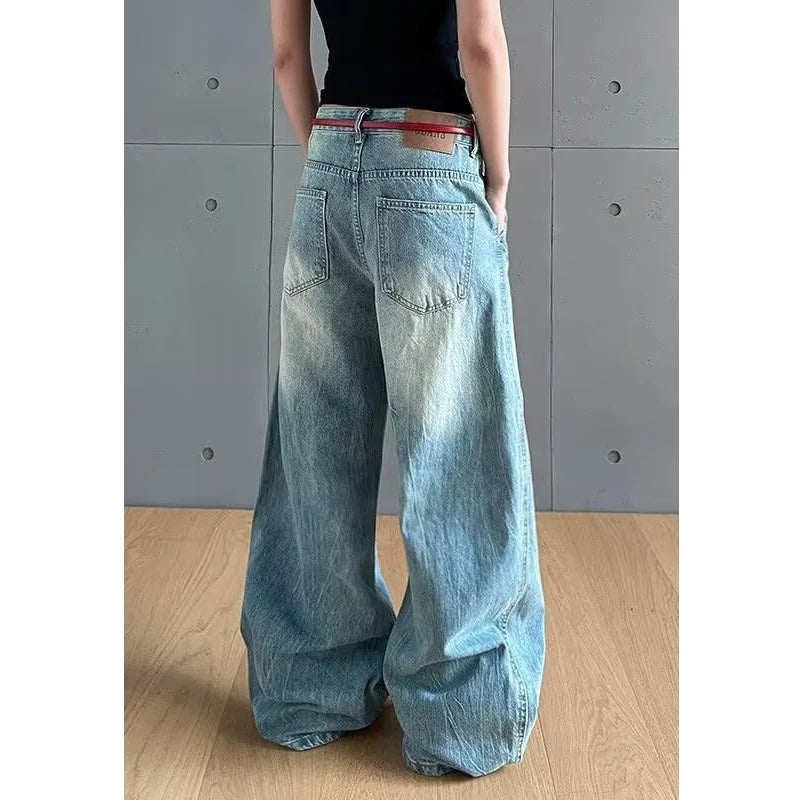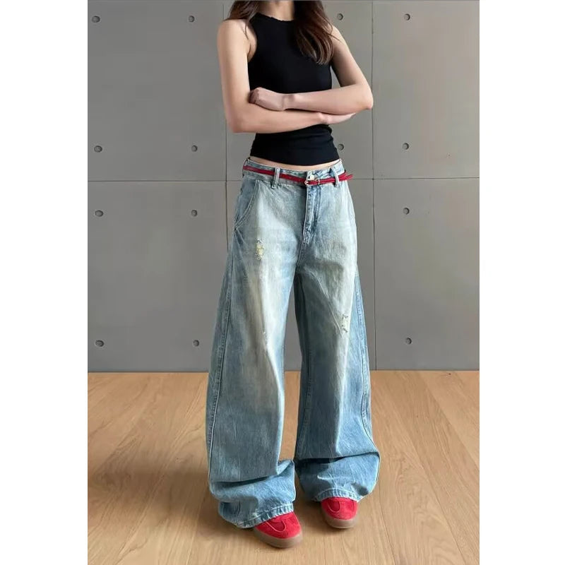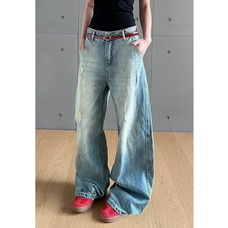Retro American Waed Distred Knife Jeans Women Vintage High Waist Straight Leg Casual Summer Jeans