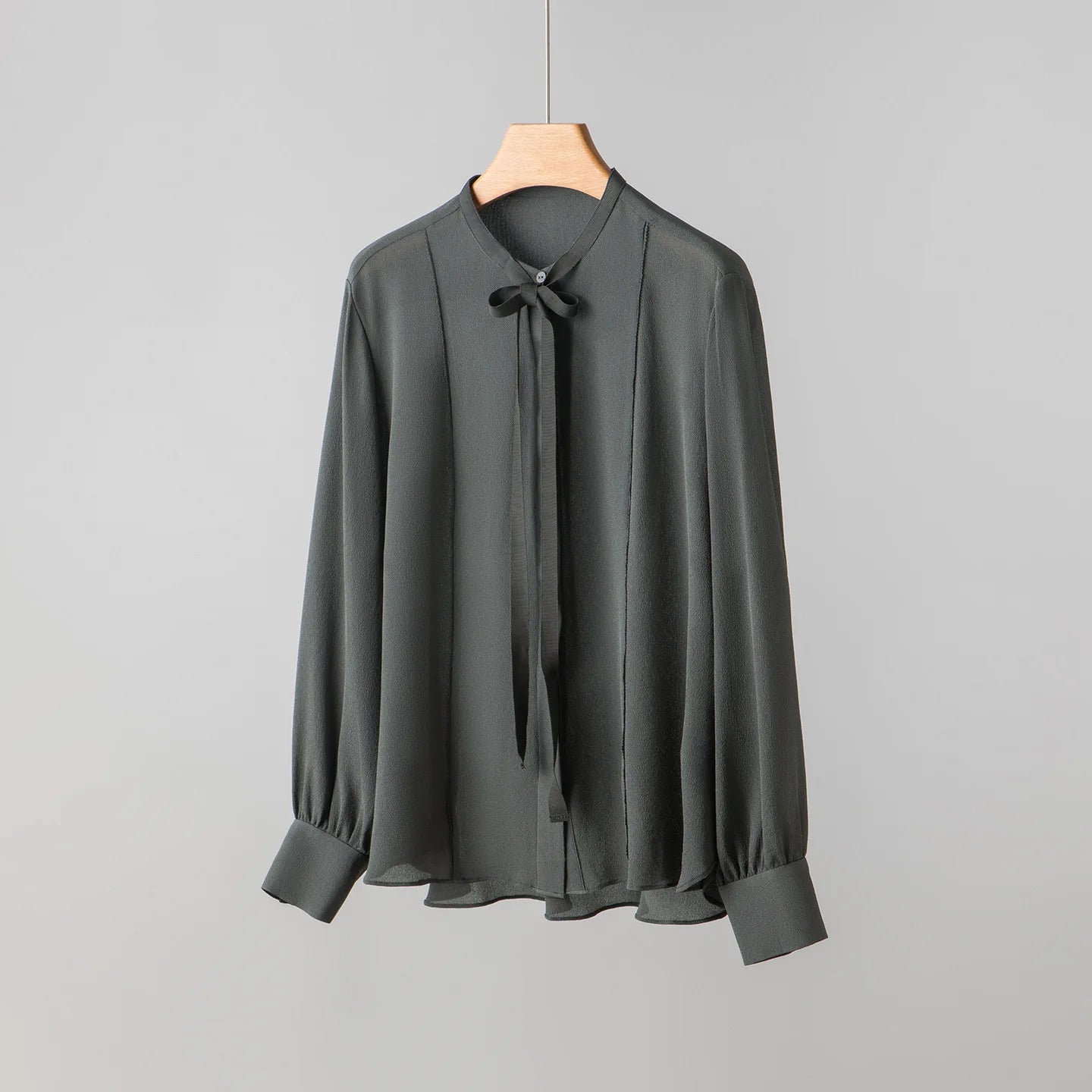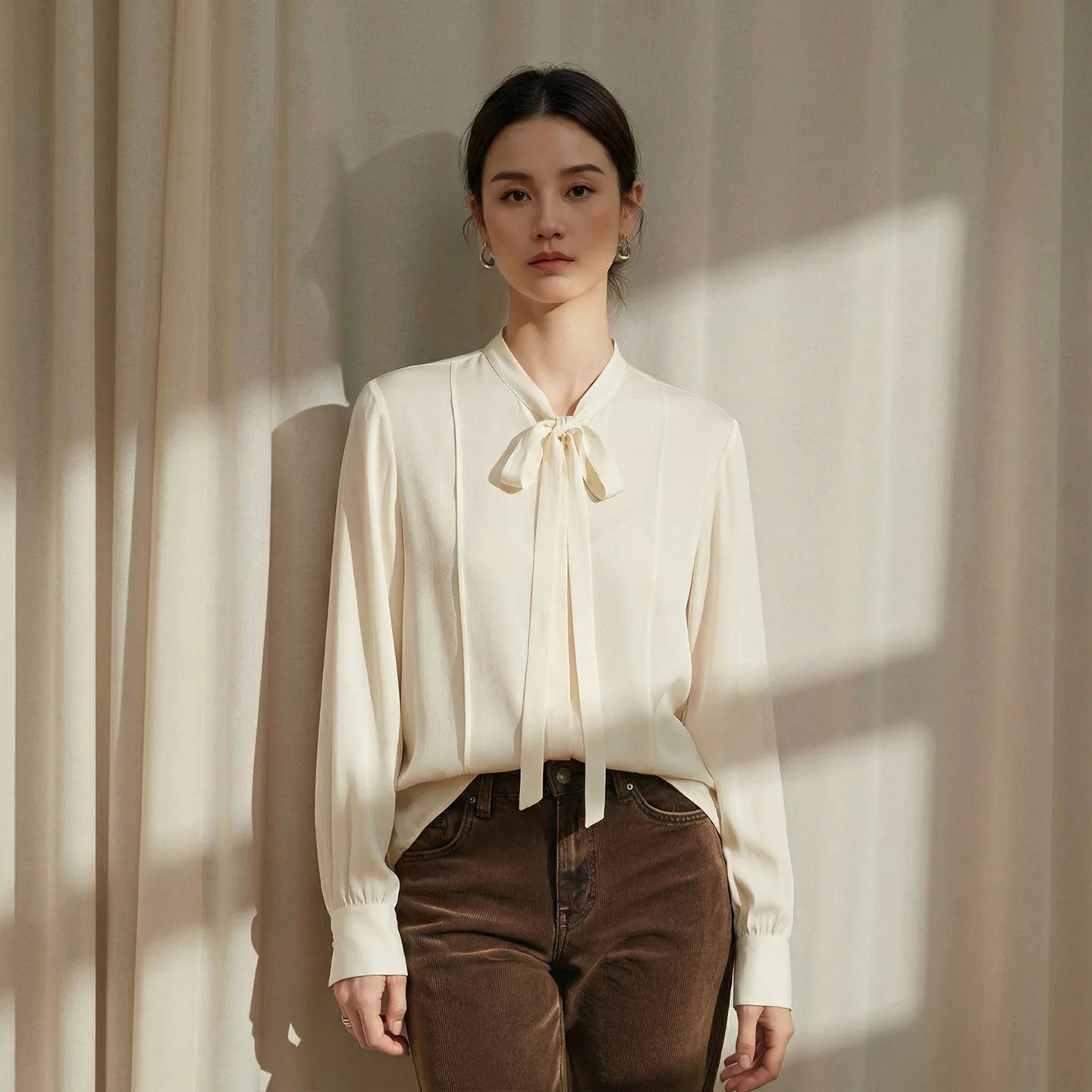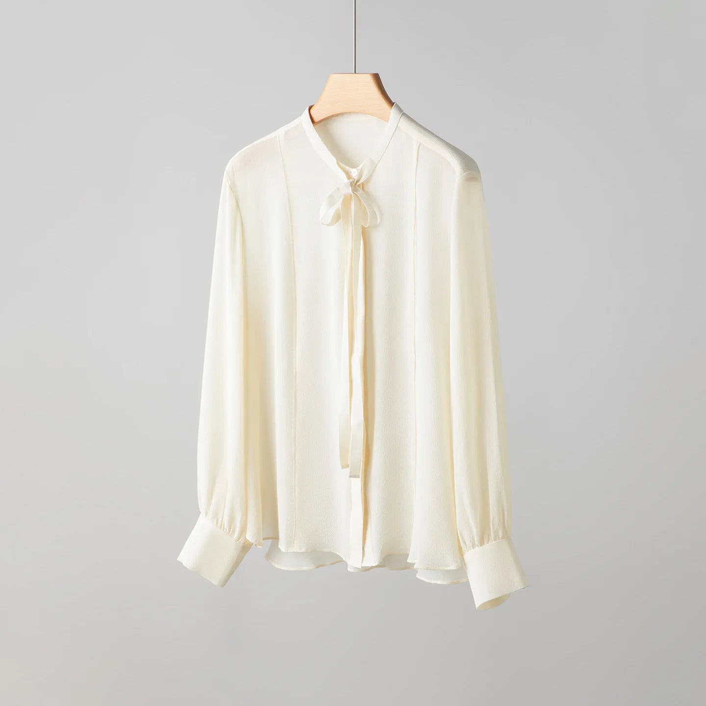 Spring New Heavy Mulberry Silk Shirt Women's Bow Tie Blouse French Style Long Sleeve Pleated Office Top